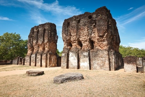Polonnaruwa a UNESCO World Heritage Site – was the Capital of Sri Lanka from 11th – 13th Centuries AD Which contains some splendid and spectacular statues. Lankatilake, Tivanka and Thuparama are the most beautiful and largest Image Houses and Tivanka has the best examples of frescoes of the Polonnaruwa era. Rankoth Vehera and Kirivehera – well preserved large Stupas, Gal Vihare – a rock shrine that has four Buddha statues, two seated, one standing and one reclining, and, Parakrama Bahu statue are examples of Sinhalese stone carvings. The Vata-da-ge is a unique creation of the Sri Lankan artists. The medieval capital, Polonnaruwa was fortified with inner and outer moats and walls. The Parakrama Samudra is on the western side of the city. The Royal Palace, Audience Hall and other buildings in the inner city were enclosed by another tall wall.